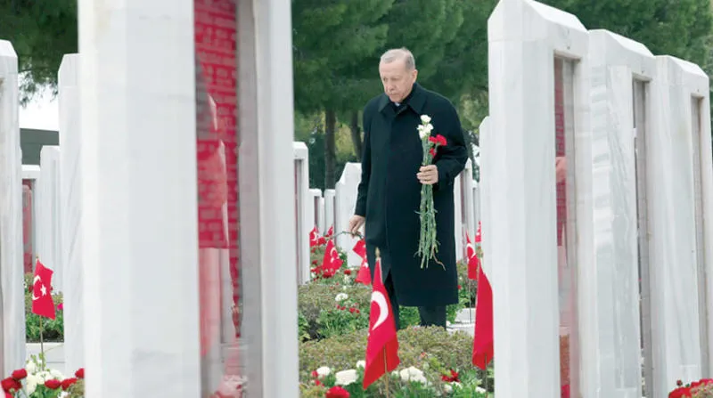 إردوغان خلال احتفال بمناسبة يوم الشهيد أمس (د.ب.أ)