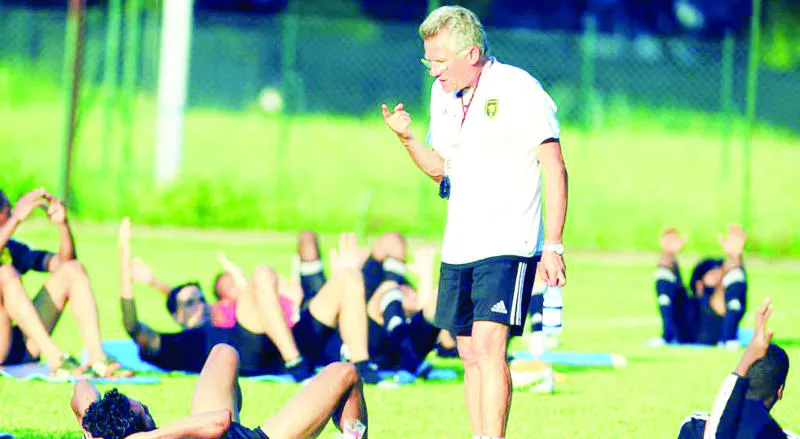مدرب الاتحاد بولوني يوجه اللاعبين خلال التدريبات (المركز الإعلامي بنادي الاتحاد)