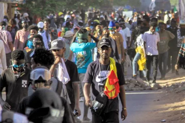 من إحدى المظاهرات المناهضة للحكومة السودانية شمال الخرطوم في 14 مارس الحالي (أ.ف.ب)