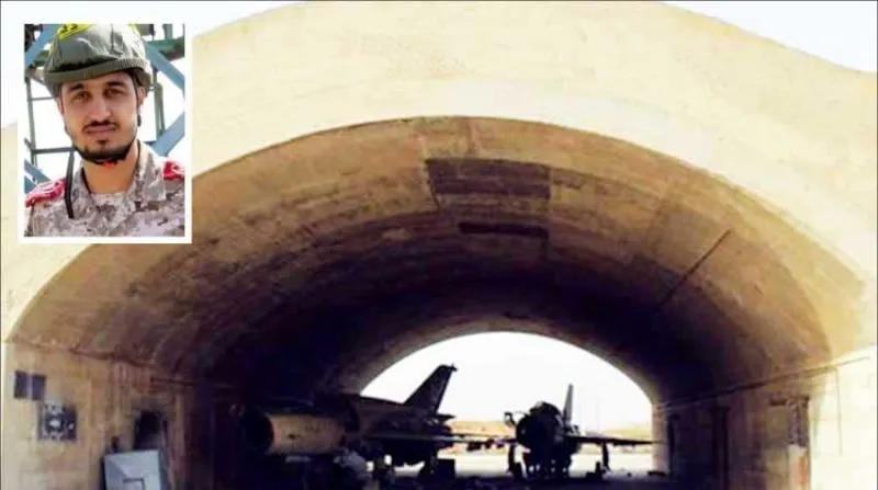 صورة أرشيفية لمطار الضبعة العسكري في سوريا... وفي الإطار المستشار العسكري الإيراني مقداد مهقاني (تسنيم)