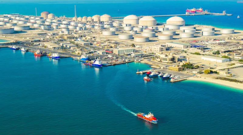 صهاريج نفط وسفن شحن بميناء رأس تنورة في المنطقة الشرقية بالسعودية على الخليج العربي (موقع شركة أرامكو السعودية)