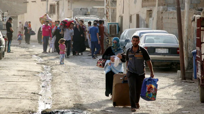 صورة أرشيفية لسكان يفرون من مدينة الرمادي في محافظة الأنبار بعدما استولى عليها «داعش» في مايو 2015 (رويترز)