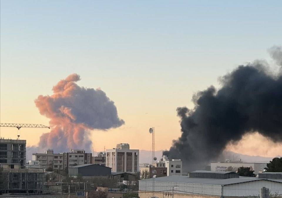 دخان يتصاعد من بلدة صناعية تضم ورشات لصناعة السجاد بمدينة أصفهان (شبكات التواصل)