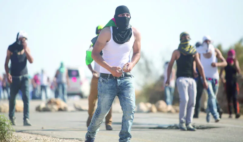 شبان فلسطينيون يرشقون قوات الأمن الإسرائيلية بالحجارة خلال صدامات أعقبت تشييع جثمان سعد دوابشة (أ.ب)