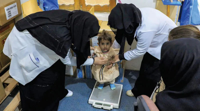 قياس وزن طفل يمني في أحد المراكز الطبية الخيرية بصنعاء (أ.ف.ب)