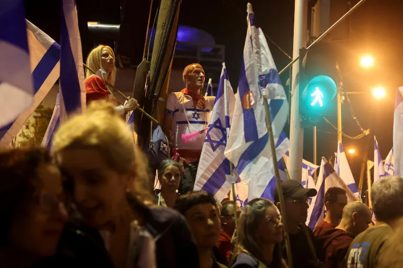 مظاهرة في تل أبيب السبت الماضي ضد الحكومة الإسرائيلية وخطة الإصلاح القضائي (رويترز)