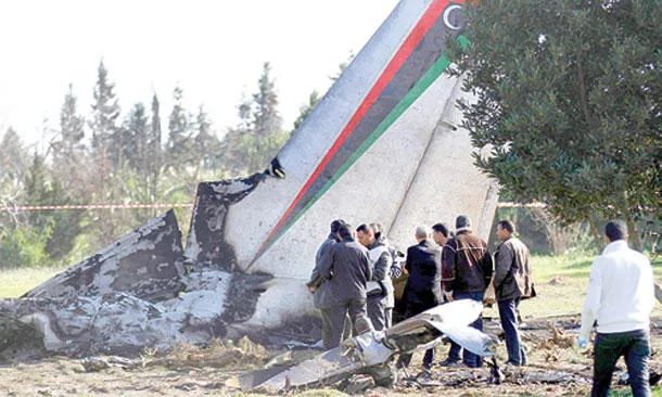 تحطمت طائرة عسكرية لبيبة قادمة من ليبيا إلى تونس أول من أمس، وعلى متنها 11 راكبا من المرضى ومرافقيهم بالإضافة إلى طاقم الطائرة وكلهم من الليبيين. وأعلنت السلطات الليبية عن مصرع جميع ركاب الطائرة العسكرية الليبية من نوع «الانتينوف 26» على بعد 40 ميلا جنوب العاصمة التونسية في منطقة قرمبالي.