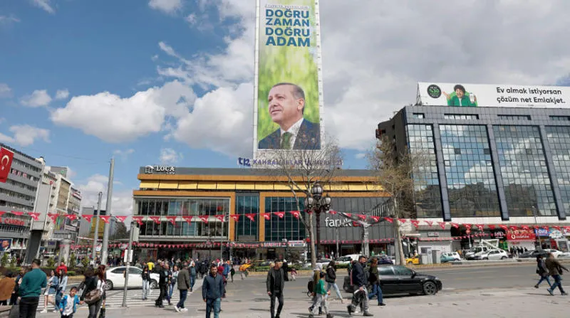 لافتة انتخابية تروج للرئيس التركي في أنقرة (أ.ف.ب)