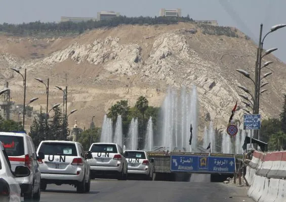 وقال شهود، إن «قافلة من خمس سيارات للأمم المتحدة تحمل ثمانية من أعضاء الفريق على الأقل، وصلت إلى فندق بوسط العاصمة السورية دمشق».