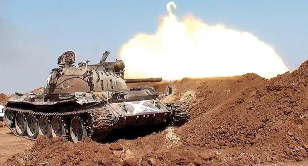 موقع دبابات تابع للمعارضة السورية يقصف تجمعات لتنظيم داعش في ريف محافظة حلب الشمالي (وكالة أنباء الأناضول)