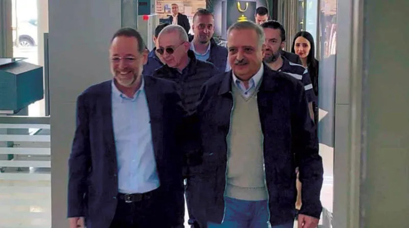 خير الدين في بيروت بعد عودته الشهر الماضي وفي استقباله رئيس «الحزب الديمقراطي اللبناني» طلال أرسلان (تويتر)