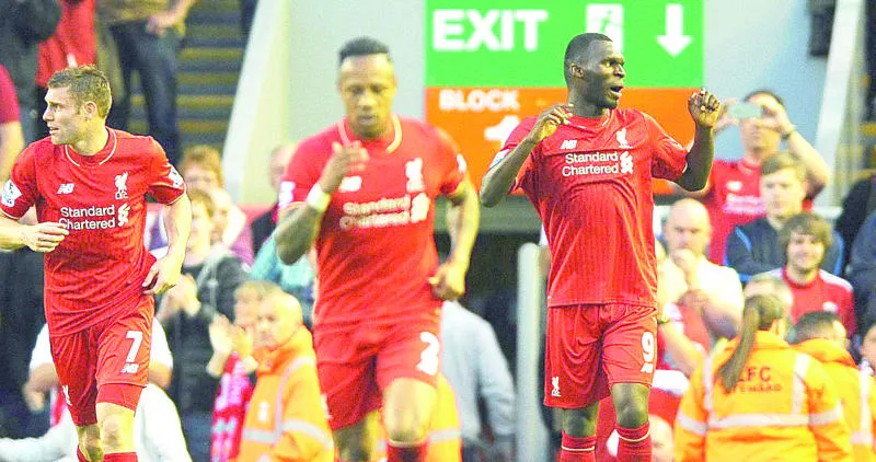بنتيكي (يمين) يحتفل بهدف فوز ليفربول (إ.ب.أ)