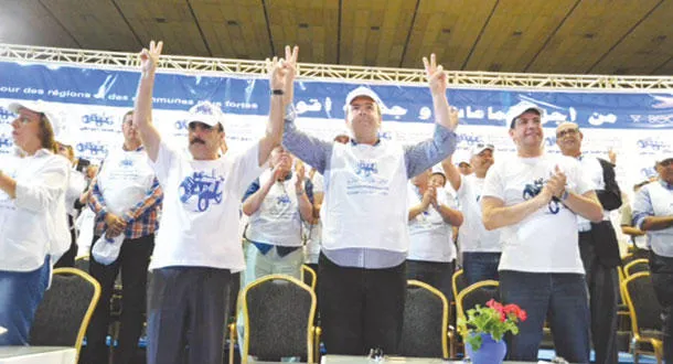 قدة حزب الأصالة والمعاصرة المعارض لدى إعطائهم انطلاقة الحملة الانتخابية للحزب في الرباط أمس (تصوير: مصطفى حبيس)
