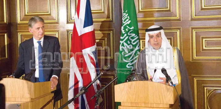وزير الخارجية السعودي عادل الجبير، ونظيره البريطاني فيليب هاموند، خلال مؤتمر صحافي في لندن أمس (تصوير: جيمس حنا)