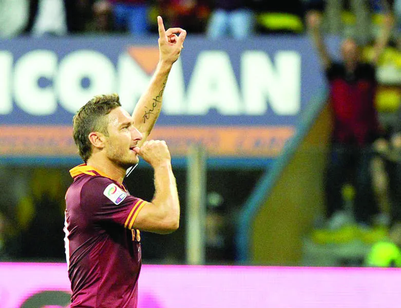 كان الأمر معروفا بالفعل منذ فترة، لكن توقيع فرانشيسكو توتي قائد فريق روما على عقده الجديد الذي يمتد لعامين إضافيين (حتى 2016) يوم الجمعة الماضي لاقى ارتياحا كبيرا لدى جماهير النادي واللاعب نفسه. وعلق توتي قائلا عقب توقيع العقد: «أشكر بالوتا رئيس النادي على هذا العقد الذي لاقى ارتياحا كبيرا من جانبي». وأضاف قائد روما المخضرم بعد ذلك: «كانت هذه مجرد مزحة، مثل مسألة القميص الجديد. لقد كان كل شيء معروفا ومتفقا عليه بشكل مسبق». وكان مسؤولو نادي روما قد أعدوا مستندات وترتيبات توقيع العقد في عجلة شديدة مساء الخميس الماضي من أجل إتمام عملية التوقيع صباح الجمعة في ظل وجود بالوتا الذي سيرحل عن روما بعد حضوره لمباراة الديربي. وبمقتضى هذا العقد الجديد سيستمر توتي في الملاعب حتى سن الأربعين «رغم أنه يستطيع الاستمرار حتى 100 عام» وفق ما قاله زميله ميكسيس.