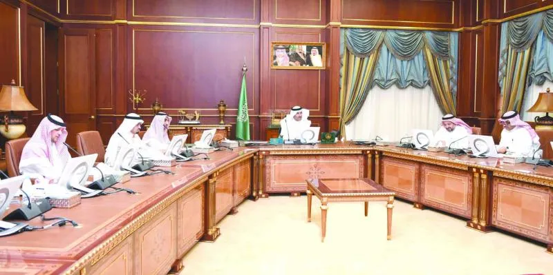 أمير المدينة المنورة خلال ترؤسه اجتماع اللجنة الإدارية العليا أمس («الشرق الأوسط»)