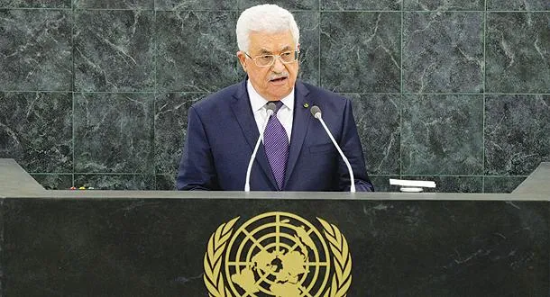 الرئيس الفلسطيني محمود عباس يلقي كلمته في نيويورك أمس (إ.ب.أ)