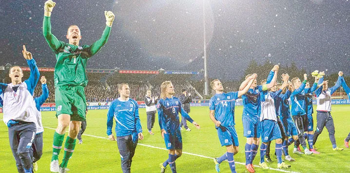 ولم يكن غريبا أن يحتفل آلاف من المشجعين بالمنتخب الآيسلندي في ميدان «أنغولفستورغ» بوسط العاصمة ريكيافيك بعدما صنع الفريق التاريخ بالتأهل إلى يورو 2016 من خلال تعادله السلبي مع كازاخستان في مباراته الثامنة بالتصفيات ضمن المجموعة الأولى.