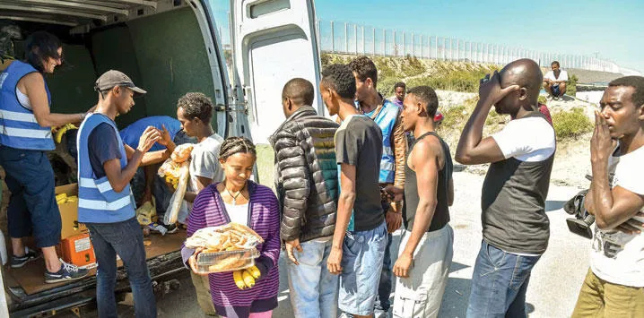 منظمة حقوقية توزع المعونات الغذائية على اللاجئين القابعين في كاليه شمال فرنسا (أ.ف.ب)