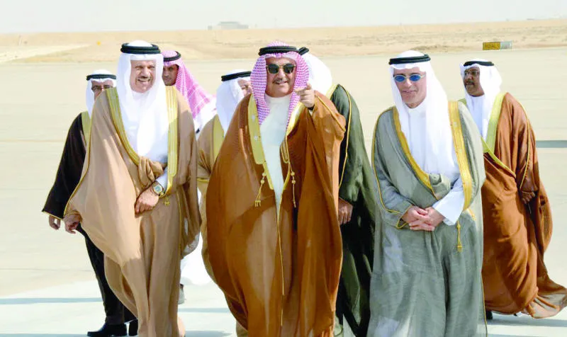 وزير خارجية البحرين يتوسط نظيره السعودي عادل الجبير والأمين العام لدول مجلس التعاون عبد اللطيف الزياني في الرياض أمس (واس)