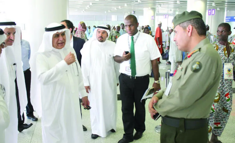 سليمان الحمدان رئيس هيئة الطيران المدني خلال زيارة ميدانية لأحد المطارات للاطمئنان على سير الإجراءات الخاصة بالحجاج («الشرق الأوسط»)