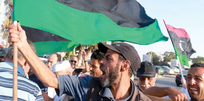 مظاهرات في بنغازي أول من أمس ضد الاتفاق بين الأطراف الليبية برعاية مبعوث الأمم المتحدة (رويترز)