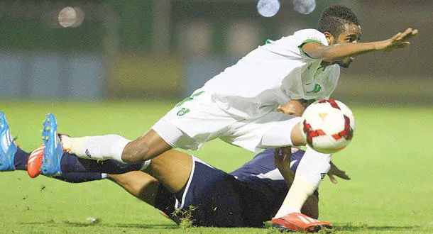 من مباراة الأهلي والأنصار أول من أمس (تصوير: عبد الله بازهير)