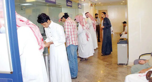 عدد من العملاء داخل أحد البنوك السعودية في جدة غرب السعودية (تصوير: أحمد حشاد)