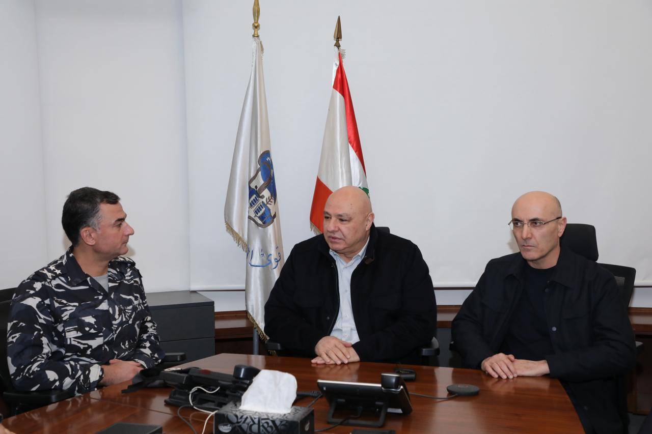 الرئيس اللبناني جوزيف عون يتوسط وزير الداخلية العميد أحمد الحجار ومدير عام قوى الأمن الداخلي اللواء رائد عبد الله خلال تفقده إجراءات ليلة رأس السنة (أرشيفية - قوى الأمن)