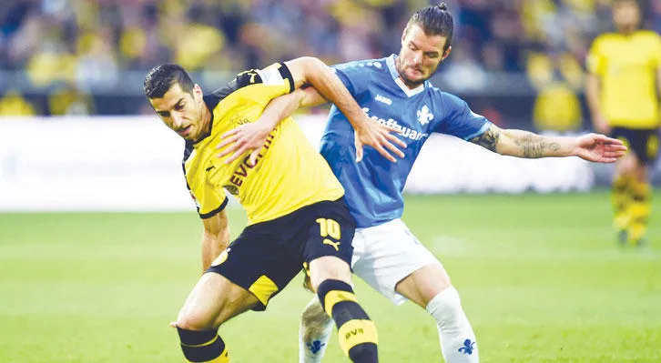 من مباراة دورتموند ودرام شتات أمس في الدوري الألماني (أ.ف.ب)