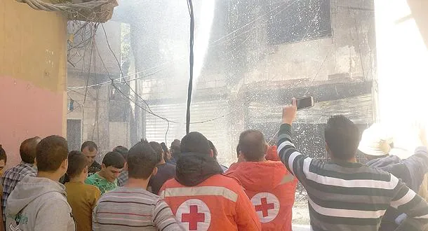 رجال الإطفاء يخمدون نيرانا اندلعت عقب اشتباكات شهدتها مدينة بعلبك بين عناصر من حزب الله وعائلة سنية أمس (أ.ف.ب)