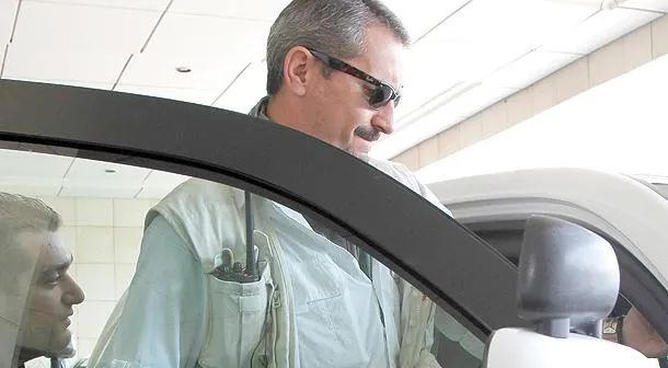 عنصر من فريق التفتيش التابع للأمم المتحدة للتحقيق في انتهاكات الكيماوي في سوريا قبل مغادرة فندق في دمشق لمعاينة أحد المواقع أمس (رويترز)