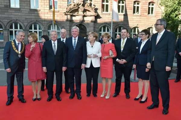 وتشارك في الاحتفالات المستشارة الألمانية أنجيلا ميركل وألماني آخر من الشرق هو رئيس الجمهورية يواكيم غاوك الذي سيلقي كلمة. وستنظم حفلات موسيقية وألعاب نارية في هذه الاحتفالات التي ستجري تحت شعار «تجاوز الحدود».