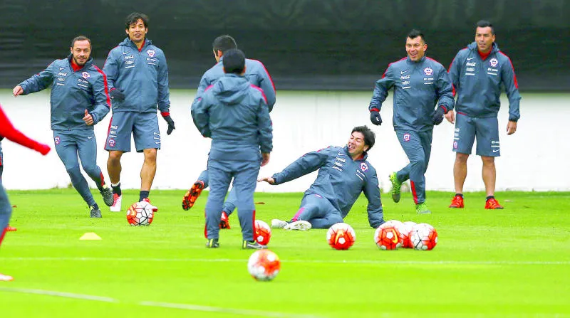 لاعبو منتخب تشيلي في التدريبات استعدادًا لمواجهة البرازيل (رويترز)