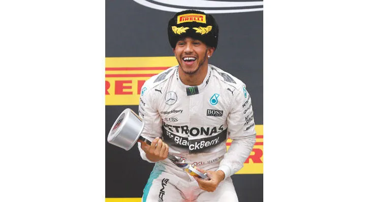 خطا سائق «مرسيدس» البريطاني لويس هاميلتون خطوة إضافية نحو الاحتفاظ بلقبه بطلاً للعالم بفوزه بسباق جائزة روسيا الكبرى، المرحلة الخامسة عشرة من بطولة العالم لسباقات «فورمولا1»، أمس على حلبة سوتشي.