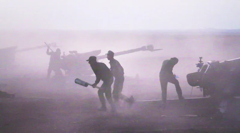 قوات الأسد تحمّل مدافع الهاوتزر بالقذائف بالقرب من بلدة مورك، حيث شنت هجوما ضد المعارضة المسلحة الأسبوع الماضي في وسط وشمال غربي سوريا بمساعدة الضربات الجوية الروسية (أ.ب)