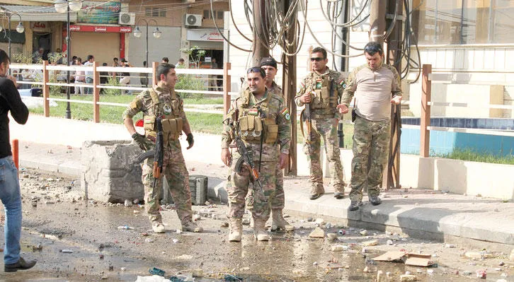 عناصر من قوات البيشمركة الكردية في مدينة السليمانية شمال العراق التي شهدت مظاهرات أدت إلى مقتل ثلاثة أشخاص (رويترز)