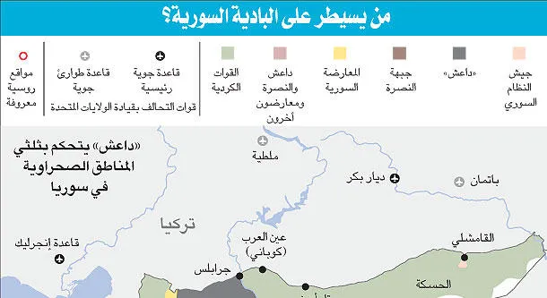 وإذا كان «داعش» يسيطر على ثلثي المناطق الصحراوية السورية، فإنها «تعد مناطق خالية، يسكنها القليل من البدو، وبالتالي، من يسيطر على عقد طرق المواصلات بين المحافظات هو الذي يسيطر على المنطقة بأكملها»، كما يقول مصدر في جنوب سوريا. لكن هذه المنطقة لا تحتضن وجودًا عسكريًا مكثفًا للتنظيم «خلافًا للمدن التي تسكنها تجمعات بشرية كبيرة»، كما يعد التمدد فيها «سهلاً بغياب المراقبة الجوية، وغياب التجمعات السكنية».