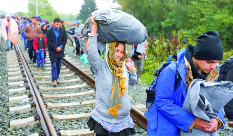 مهاجرون ولاجئون يتجهون إلى الحدود الكرواتية - المجرية أمس (رويترز)