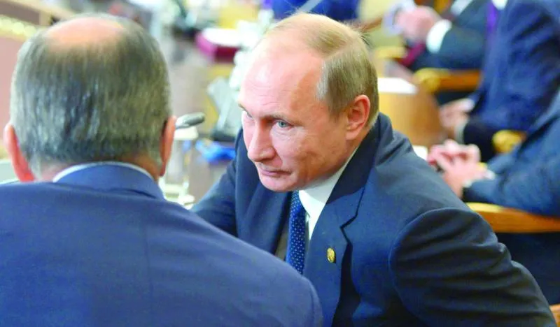 الرئيس الروسي فلاديمير بوتين ووزير خارجيته سيرجي لافروف في قمة الأستانة أمس (أ.ب)