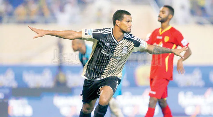 ريفاس يحتفل بأحد أهدافه الثلاثة في القادسية أمس (تصوير: عيسى الدبيسي)
