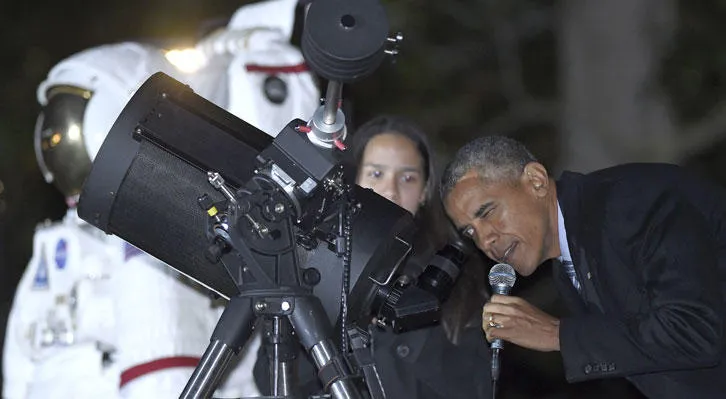 وساعد أوباما في استخدام التلسكوب طلبة في المرحلة الثانوية وخبراء في الفلك، وشرحوا له أن الحفر الموجودة على سطح القمر سببها ارتطام أجرام فضائية كبيرة به. وقال أوباما إنه تحدث في وقت سابق إلى رواد الفضاء الذين يقيمون على متن المحطة الفضائية الدولية، مشيدا بالجهود التي تبذلها إدارته في مجال العلوم، ومؤكدا أن ناسا في طريقها إلى النهوض بإمكانات إرسال بشر إلى المريخ في عام 2030، وقال أوباما للطلبة «ربما يكون بعضكم ممن سيشقون طريقهم إلى المريخ».