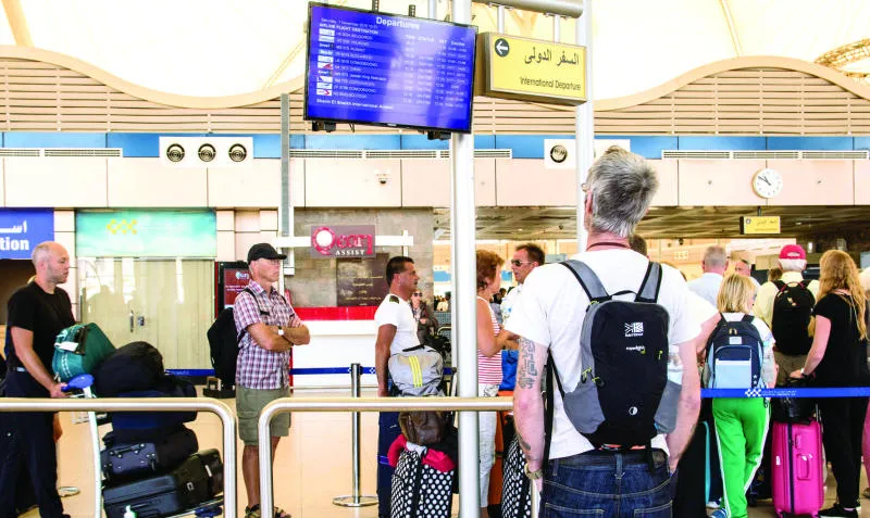 عدد من السائحين في مطار شرم الشيخ لدى عودتهم إلى بلادهم (أ.ب)
