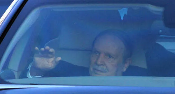 الرئيس الجزائري عبد العزيز بوتفليقة بعد مغادرته المحكمة الدستورية في العاصمة الجزائر حيث توجه أمس يسجل ترشحه للانتخابات الرئاسية (أ.ب.)
