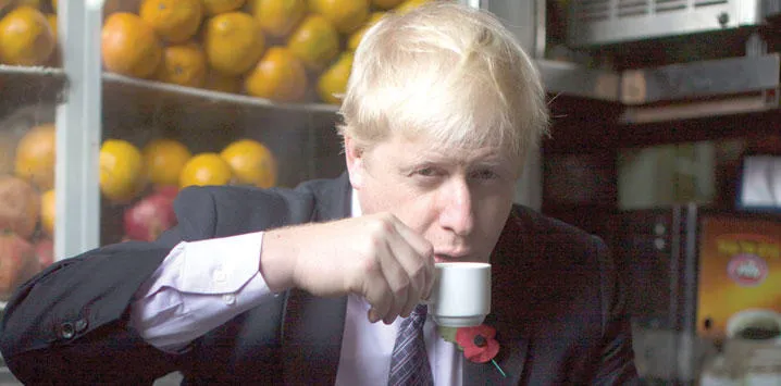 عمدة لندن بوريس جونسون يحتسي القهوة في مقهى فلسطيني في القدس القديمة (إ.ب.أ)