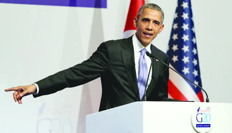 الرئيس الأميركي باراك أوباما أثناء المؤتمر الصحافي الذي عقده عقب اختتام اعمال قمة العشرين في انطاليا أمس (رويترز)