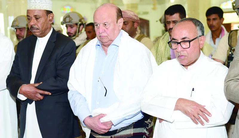 هادي وقيادات حكومية وعسكرية يؤدون صلاة الجمعة في عدن وسط تفاؤل شعبي