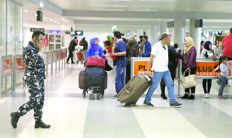 لبنانيون لدى وصولهم إلى مطار بيروت الدولي أمس عشية قرار روسيا تنفيذ مناورات عسكرية بالقرب من سواحل لبنان (رويترز)