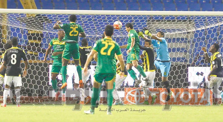 لقطة لهدف التعادل الذي سجله فريق الخليج في مرمى الاتحاد (تصوير: عيسى الدبيسي)
