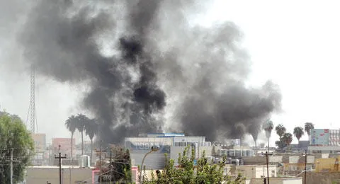 الدخان يتصاعد من موقع انفجار في كركوك أمس (أ.ف.ب)